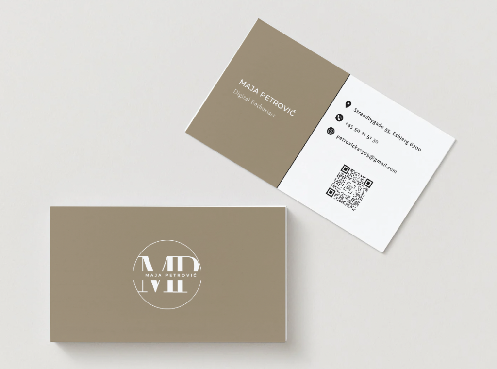Created in Canva, this sleek and professional business card design balances typography, color, and layout to deliver a strong personal brand identity in a compact format.